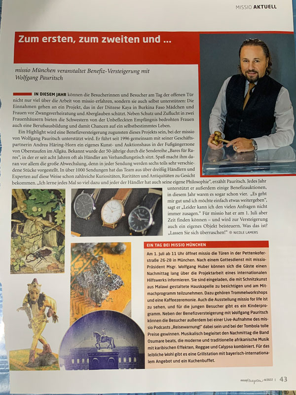 Benefizversteigerung für die Organisation Missio in München am 1 Juli 2022